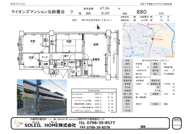 880万円 ライオンズマンション北鈴蘭台C棟