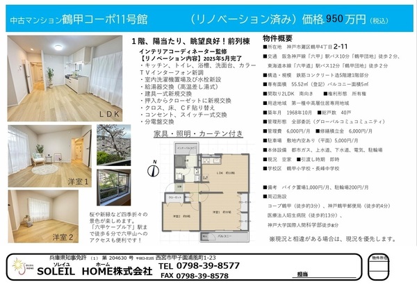 950万円 鶴甲コーポ11号棟