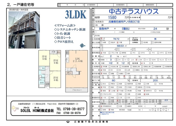 1580万円 尼崎市戸ノ内町3丁目 テラスハウス
