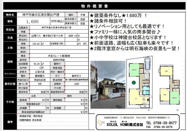 1680万円 垂水区南多聞台