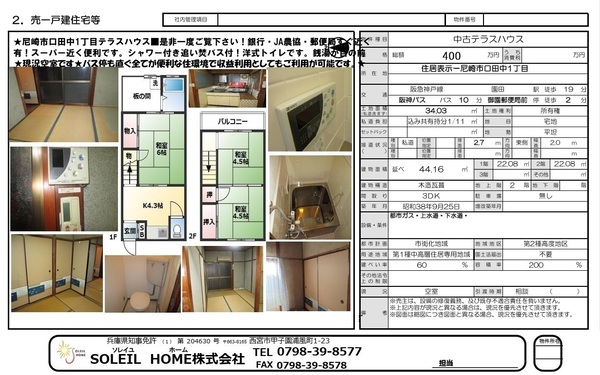 400万円 尼崎市口田中1丁目(テラスハウス)