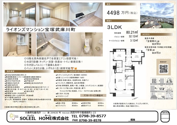 4498万円 ライオンズマンション宝塚武庫川町