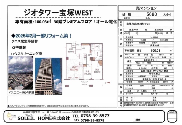 5680万円 ジオタワー宝塚WEST