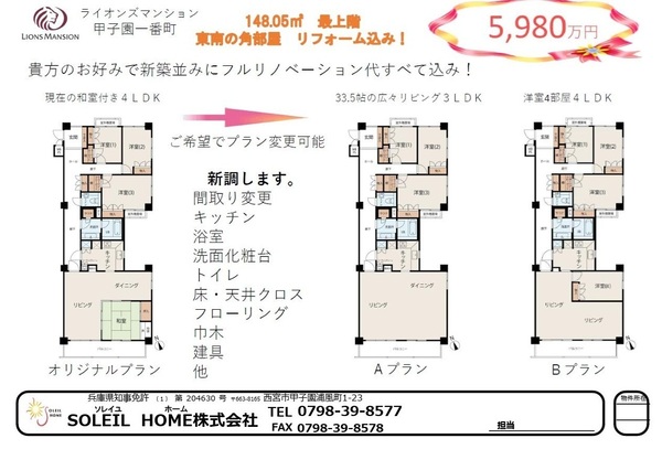 5980万円 ライオンズマンション甲子園一番町