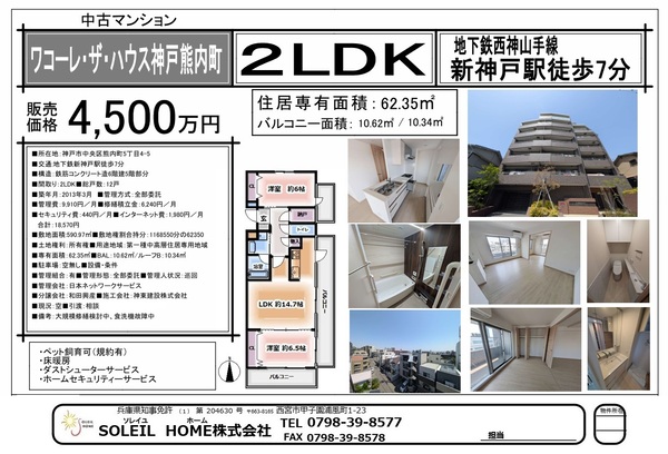 4500万円 ワコーレ・ザ・ハウス神戸熊内町