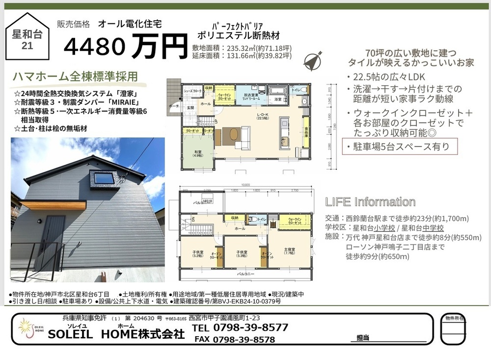 省エネルギー対策 / フラット35Sに対応 / 高気密高断熱住宅 / 駐車3台以上可 / 即引渡可 / 2沿線以上利用可 / LDK20畳以上 / 土地50坪以上 / 省エネ給湯器 / スーパー 徒歩10分以内 / システムキッチン / 浴室乾燥機 / 陽当り良好 / 全居室収納 / 閑静な住宅地 / 前道6m以上 / 和室 / シャワー付洗面化粧台 / 対面式キッチン / バリアフリー / トイレ2ヶ所 / 自然素材使用 / 浴室1坪以上 / 2階建 / 2面以上バルコニー / 東南向き / 南面バルコニー / 複層ガラス / 全室南向き / オートバス / 温水洗浄便座 / TVモニタ付インターホン / 通風良好 / アイランドキッチン / パントリー(食器・食品の収納庫) / ウォークインクローゼット / 天井高2.5m以上 / IHクッキングヒーター / リビング階段 / 全居室複層ガラスか複層サッシ / シューズインクローク / 小学校 徒歩10分以内 / 平坦地 / 納戸 / 食器洗乾燥機 / オール電化 / 浄水器 / スマートキー / 高機能トイレ