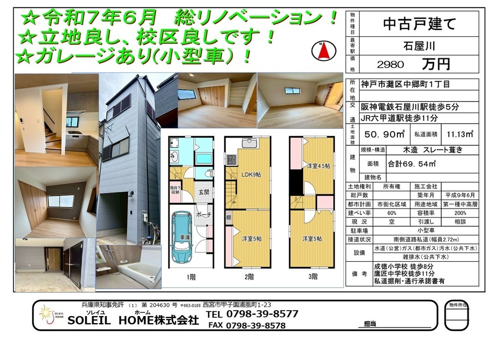 2沿線以上利用可 / スーパー 徒歩10分以内 / 内装リフォーム / 陽当り良好 / 全居室収納 / 駅まで平坦 / 閑静な住宅地 / 総合病院 徒歩10分以内 / シャワー付洗面化粧台 / 東南向き / フローリング張替 / 温水洗浄便座 / 浴室に窓 / TVモニタ付インターホン / リノベーション / 通風良好 / 全居室フローリング / 3階建以上 / リビング階段 / 都市ガス / 小学校 徒歩10分以内 / 平坦地 / ビルトインガレージ