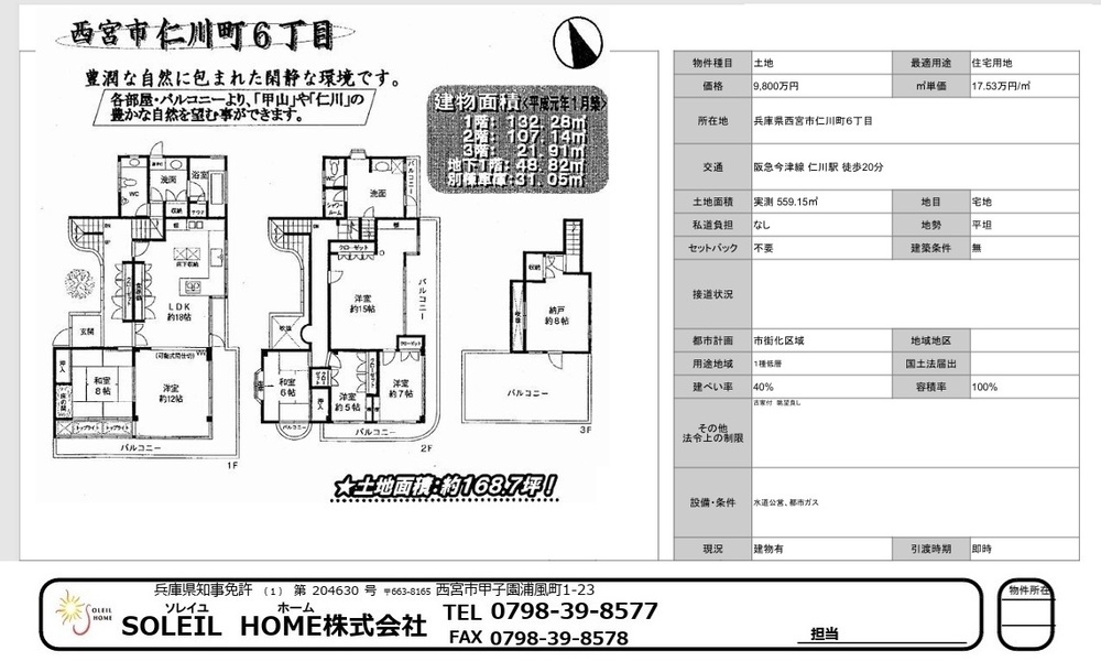 9800万円 西宮市仁川町6丁目