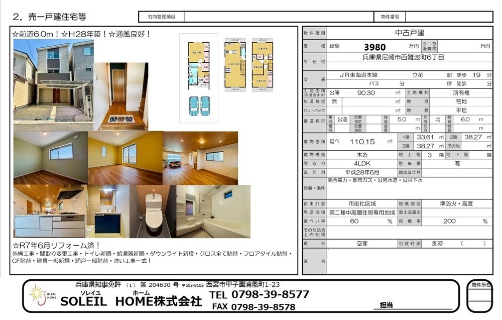 駐車2台可 / 2沿線以上利用可 / LDK18畳以上 / スーパー 徒歩10分以内 / 内装リフォーム / システムキッチン / 陽当り良好 / 全居室収納 / 駅まで平坦 / 閑静な住宅地 / 総合病院 徒歩10分以内 / 前道6m以上 / シャワー付洗面化粧台 / 対面式キッチン / トイレ2ヶ所 / 浴室1坪以上 / 外装リフォーム / 2面以上バルコニー / 南面バルコニー / フローリング張替 / 浴室に窓 / TVモニタ付インターホン / 通風良好 / 全居室フローリング / 3階建以上 / リビング階段 / 都市ガス / シューズインクローク / 小学校 徒歩10分以内 / 平坦地 / 食器洗乾燥機