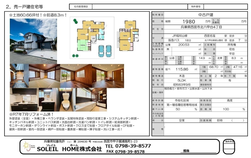 1980万円 西宮市北六甲台4丁目