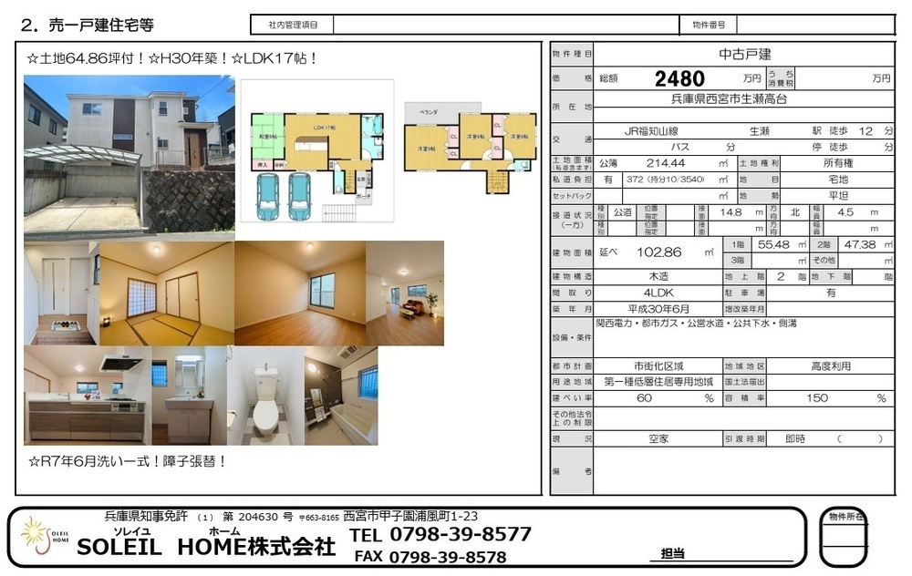 駐車2台可 / 2沿線以上利用可 / 土地50坪以上 / 山が見える / 内装リフォーム / 南向き / システムキッチン / 陽当り良好 / 全居室収納 / 閑静な住宅地 / LDK15畳以上 / 和室 / 庭 / シャワー付洗面化粧台 / 対面式キッチン / トイレ2ヶ所 / 浴室1坪以上 / 2階建 / 南面バルコニー / 南庭 / 床下収納 / 浴室に窓 / TVモニタ付インターホン / 緑豊かな住宅地 / 通風良好 / パントリー(食器・食品の収納庫) / 都市ガス / シューズインクローク / 平坦地