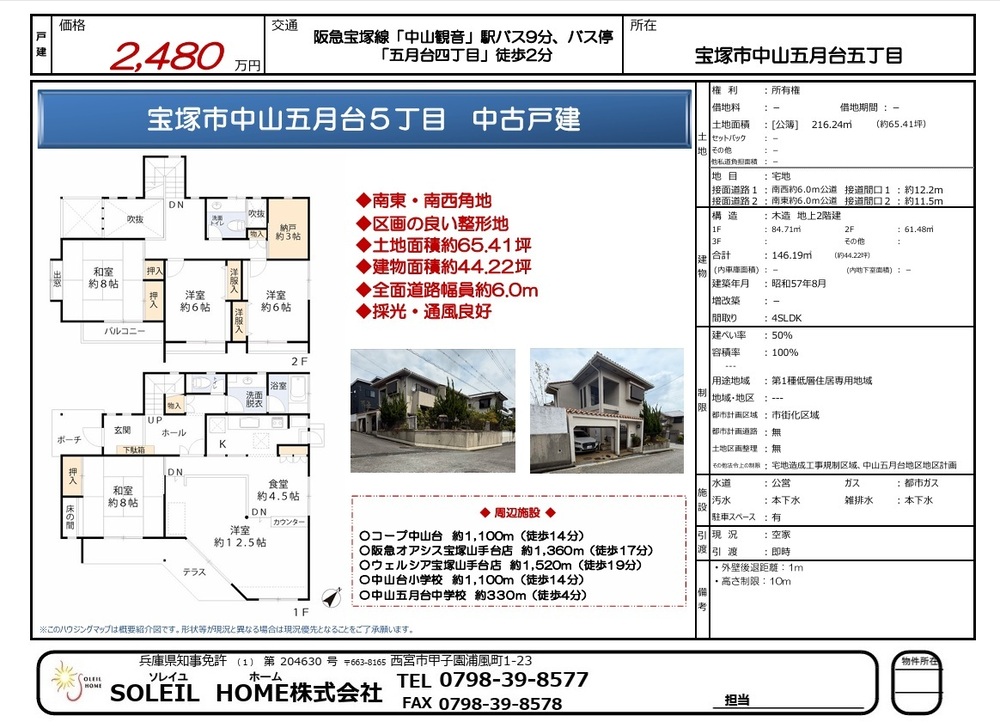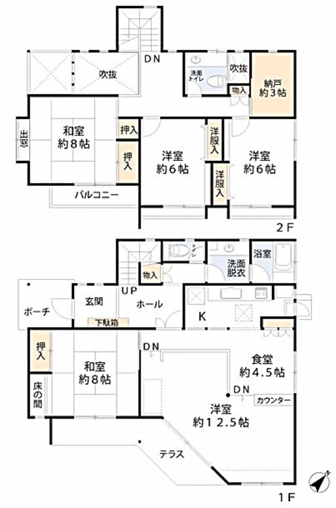土地50坪以上 / システムキッチン / 陽当り良好 / 全居室収納 / 南側道路面す / 閑静な住宅地 / 前道6m以上 / 角地 / 和室 / 整形地 / 庭 / 3面採光 / トイレ2ヶ所 / 2階建 / 東南向き / 南面バルコニー / 床下収納 / 浴室に窓 / 吹抜け / 緑豊かな住宅地 / 通風良好 / シャッター車庫 / 南西向き / 全居室6畳以上 / 都市ガス / シューズインクローク / テラス / 納戸