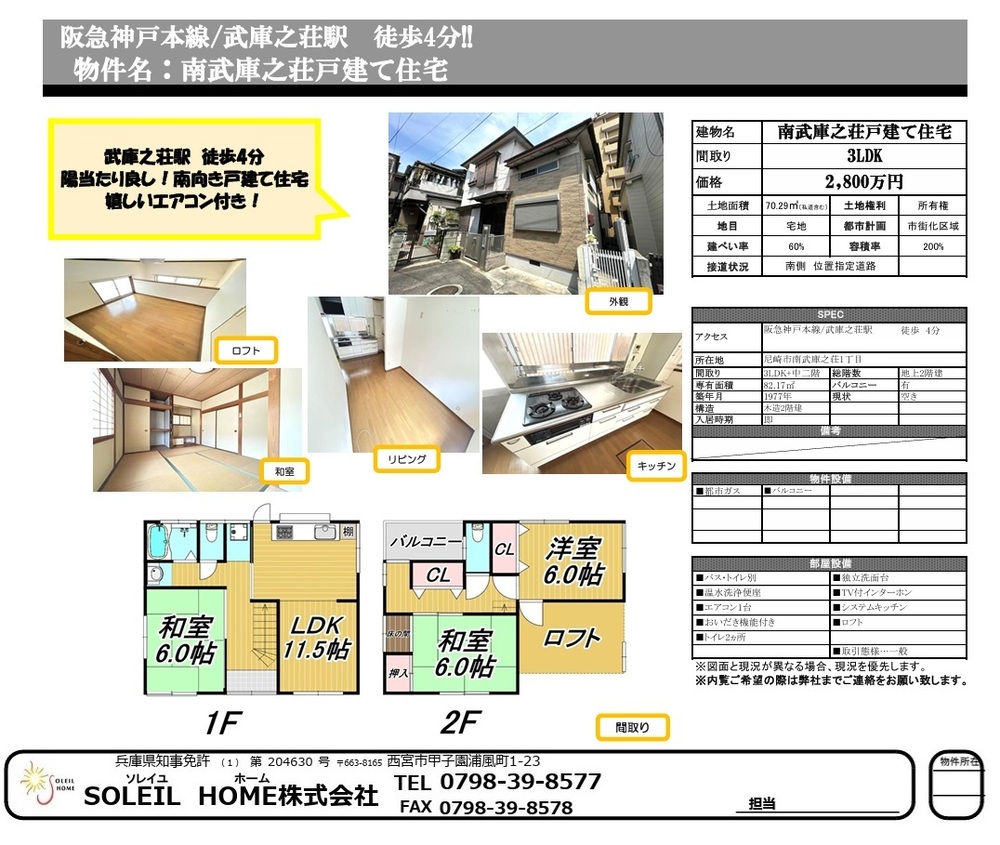 ■南向き住宅、武庫之荘駅:徒歩4分