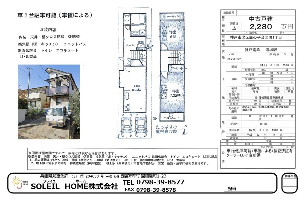 駐車2台可 / 2沿線以上利用可 / 内装リフォーム / システムキッチン / 陽当り良好 / 全居室収納 / 南側道路面す / 閑静な住宅地 / 前道6m以上 / シャワー付洗面化粧台 / 浴室1坪以上 / 2階建 / 東南向き / 南面バルコニー / フローリング張替 / 温水洗浄便座 / 浴室に窓 / 緑豊かな住宅地 / 通風良好 / 全居室フローリング / 全居室6畳以上 / IHクッキングヒーター / 都市ガス / シューズインクローク / 平坦地 / 屋根裏収納