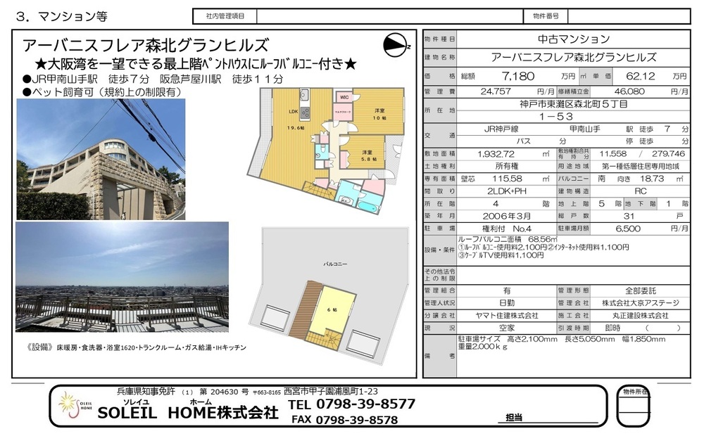 □ルーフバルコニー面積:68.56m2 ガーデニングが楽しめます(^-^)
