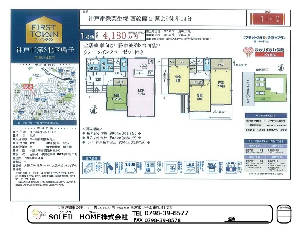 省エネルギー対策 / フラット35Sに対応 / 駐車3台以上可 / 2沿線以上利用可 / 土地50坪以上 / スーパー 徒歩10分以内 / 市街地が近い / システムキッチン / 浴室乾燥機 / 陽当り良好 / 全居室収納 / 閑静な住宅地 / 和室 / シャワー付洗面化粧台 / 対面式キッチン / トイレ2ヶ所 / 浴室1坪以上 / 2階建 / 2面以上バルコニー / 南面バルコニー / 複層ガラス / 全室南向き / 温水洗浄便座 / 床下収納 / 浴室に窓 / TVモニタ付インターホン / 都市近郊 / 通風良好 / 南西向き / ウォークインクローゼット / 都市ガス / シューズインクローク / 小学校 徒歩10分以内 / 食器洗乾燥機