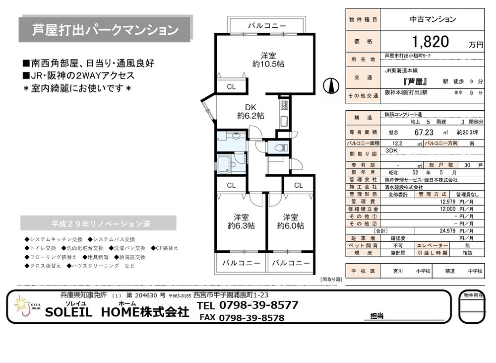 2沿線以上利用可 / スーパー 徒歩10分以内 / 市街地が近い / 内装リフォーム / システムキッチン / 角住戸 / 陽当り良好 / 全居室収納 / 閑静な住宅地 / 2面以上バルコニー / 南面バルコニー / フローリング張替 / 浴室に窓 / リノベーション / 都市近郊 / 通風良好 / 全居室フローリング / 南西向き / 全居室6畳以上 / 小学校 徒歩10分以内 / 平坦地 / 駐輪場