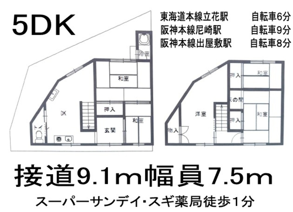 2沿線以上利用可 / スーパー 徒歩10分以内 / 市街地が近い / 陽当り良好 / 駅まで平坦 / 閑静な住宅地 / 前道6m以上 / 和室 / 2階建 / 浴室に窓 / 通風良好 / 小学校 徒歩10分以内 / 平坦地
