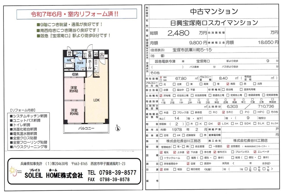 2沿線以上利用可 / スーパー 徒歩10分以内 / 内装リフォーム / システムキッチン / 陽当り良好 / 閑静な住宅地 / シャワー付洗面化粧台 / 南面バルコニー / フローリング張替 / 温水洗浄便座 / TVモニタ付インターホン / 緑豊かな住宅地 / 通風良好 / 全居室フローリング / 眺望良好 / 南西向き / 全居室6畳以上 / シューズインクローク / 小学校 徒歩10分以内 / エレベーター / 宅配ボックス / 駐輪場 / バイク置場