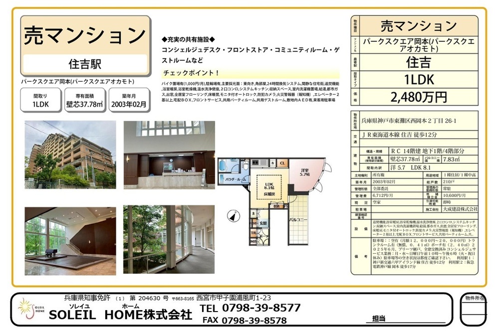 ■角部屋、LDK床暖有、AED有、来客用駐車場有