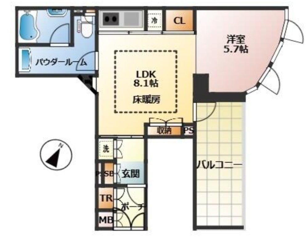 □トランクルーム有(無償、0.41m2)ポーチ有(2.40m2)