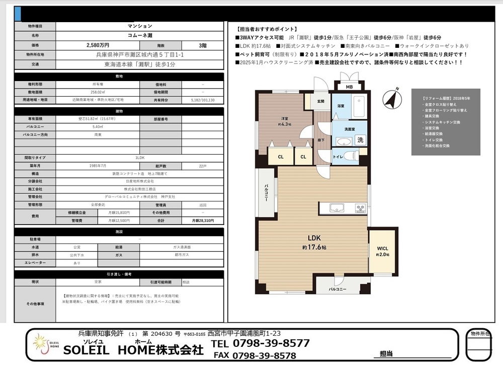 2沿線以上利用可 / スーパー 徒歩10分以内 / 市街地が近い / 内装リフォーム / システムキッチン / 浴室乾燥機 / 角住戸 / 陽当り良好 / 全居室収納 / 駅まで平坦 / 閑静な住宅地 / LDK15畳以上 / 総合病院 徒歩10分以内 / 対面式キッチン / 2面以上バルコニー / 東南向き / 南面バルコニー / フローリング張替 / 温水洗浄便座 / リノベーション / 都市近郊 / 通風良好 / 全居室フローリング / シューズインクローク / ペット相談 / 平坦地 / エレベーター / 駐輪場 / 食器洗乾燥機 / バイク置場