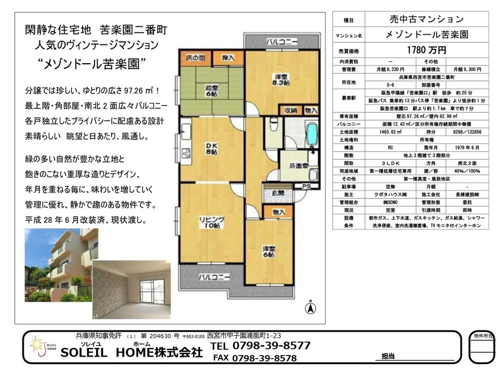 1780万円 メゾンドール苦楽園