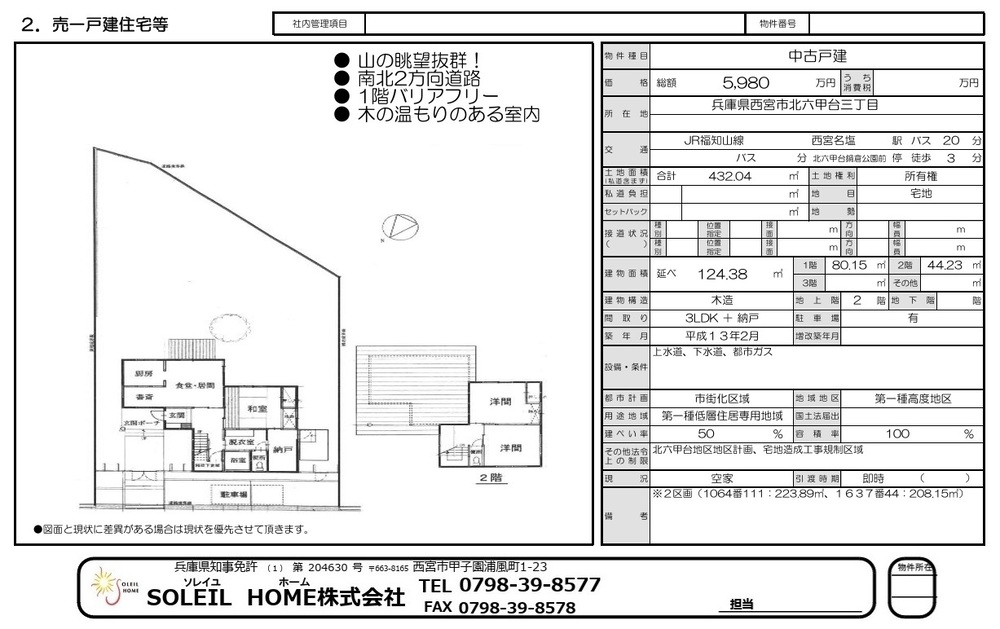 5980万円 西宮市北六甲台3丁目