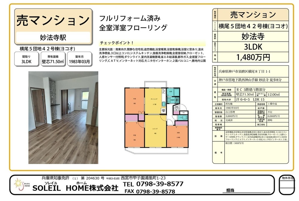 ■妙法寺駅から三ノ宮駅まで直通で移動でき、スムーズなアクセスが魅力です