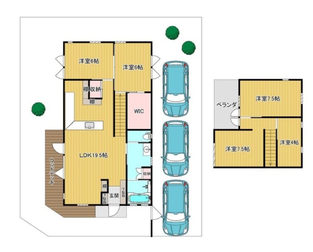 駐車3台以上可 / 土地50坪以上 / LDK18畳以上 / システムキッチン / 陽当り良好 / 閑静な住宅地 / 前道6m以上 / 角地 / 対面式キッチン / ハイルーフ駐車場 / 浴室1坪以上 / 2階建 / 東南向き / 南面バルコニー / 温水洗浄便座 / 浴室に窓 / TVモニタ付インターホン / 通風良好 / 全居室フローリング / ウッドデッキ / ウォークインクローゼット / リビング階段 / 都市ガス / シューズインクローク / 小学校 徒歩10分以内 / 平坦地 / 食器洗乾燥機