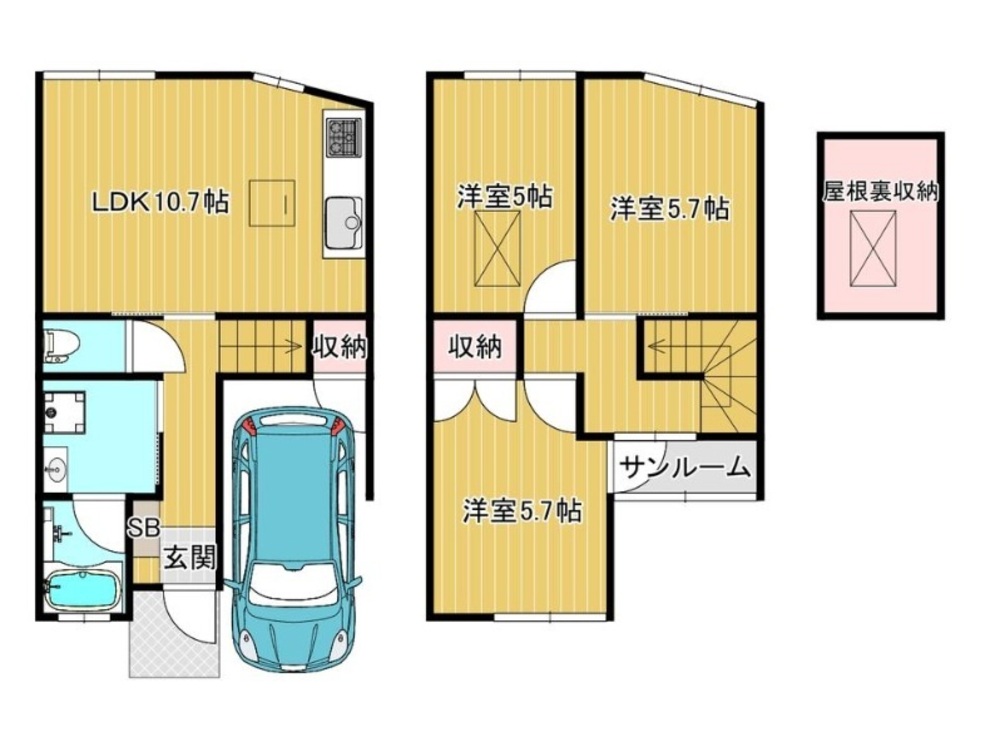 2沿線以上利用可 / スーパー 徒歩10分以内 / 内装リフォーム / システムキッチン / 陽当り良好 / 閑静な住宅地 / 2階建 / 温水洗浄便座 / 床下収納 / 浴室に窓 / 通風良好 / 全居室フローリング / シューズインクローク / 小学校 徒歩10分以内 / 平坦地 / 屋根裏収納 / 食器洗乾燥機 / ビルトインガレージ
