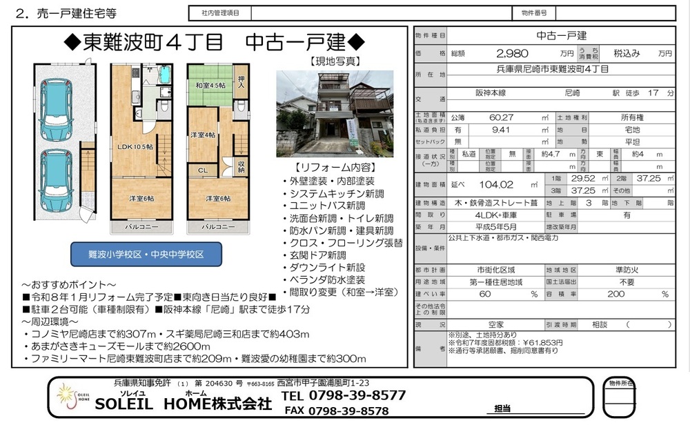 2980万円 尼崎市東難波町4丁目