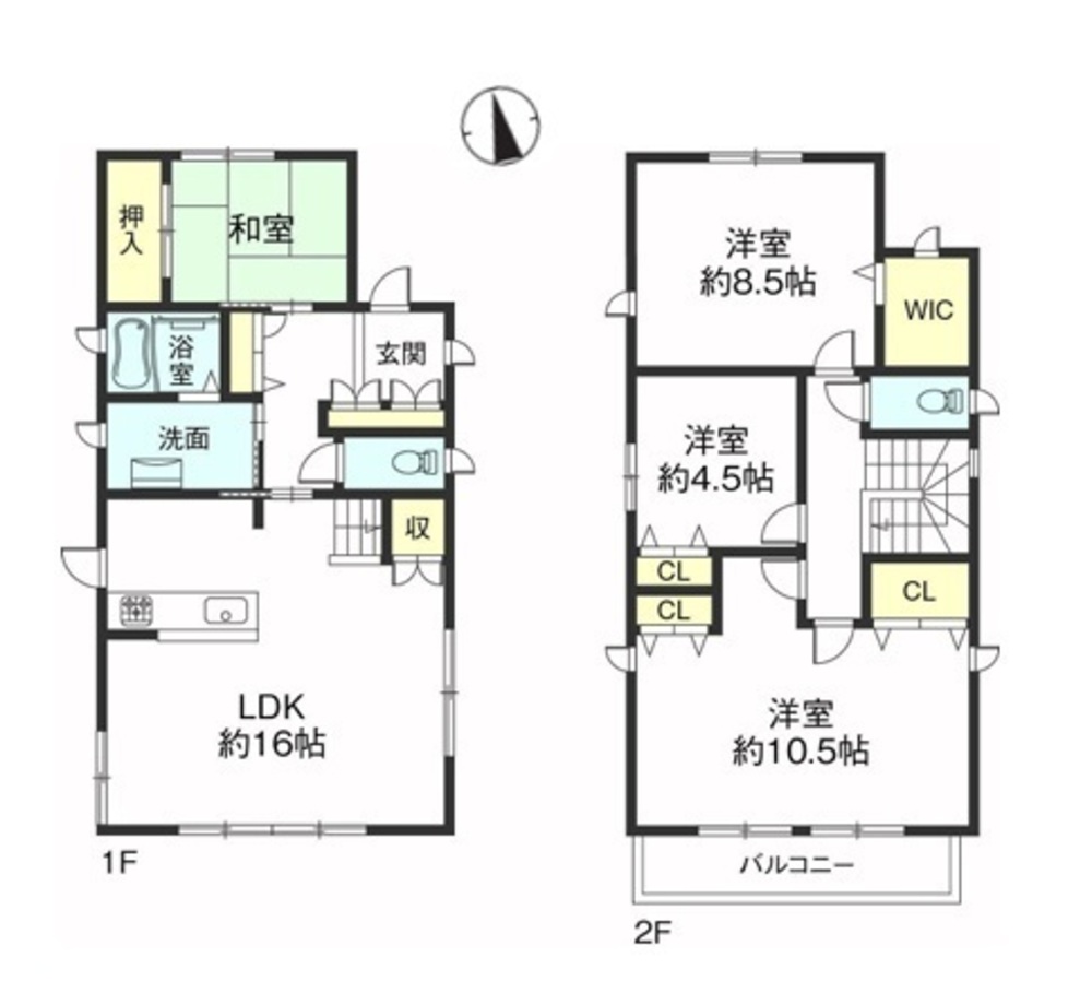 2沿線以上利用可 / システムキッチン / 陽当り良好 / 全居室収納 / 閑静な住宅地 / LDK15畳以上 / 前道6m以上 / 和室 / シャワー付洗面化粧台 / 対面式キッチン / ハイルーフ駐車場 / 3面採光 / トイレ2ヶ所 / 2階建 / 南面バルコニー / 浴室に窓 / TVモニタ付インターホン / 通風良好 / 南西向き / ウォークインクローゼット / リビング階段 / 都市ガス / シューズインクローク / 小学校 徒歩10分以内 / オール電化