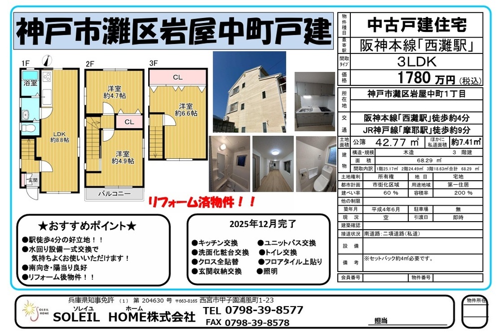 2沿線以上利用可 / スーパー 徒歩10分以内 / 内装リフォーム / システムキッチン / 陽当り良好 / 閑静な住宅地 / 総合病院 徒歩10分以内 / 南面バルコニー / フローリング張替 / 温水洗浄便座 / 浴室に窓 / TVモニタ付インターホン / 通風良好 / 全居室フローリング / 南西向き / 3階建以上 / 都市ガス / シューズインクローク / 小学校 徒歩10分以内