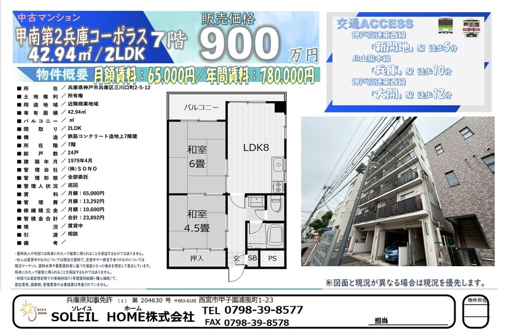 900万円 甲南第二兵庫コーポラス