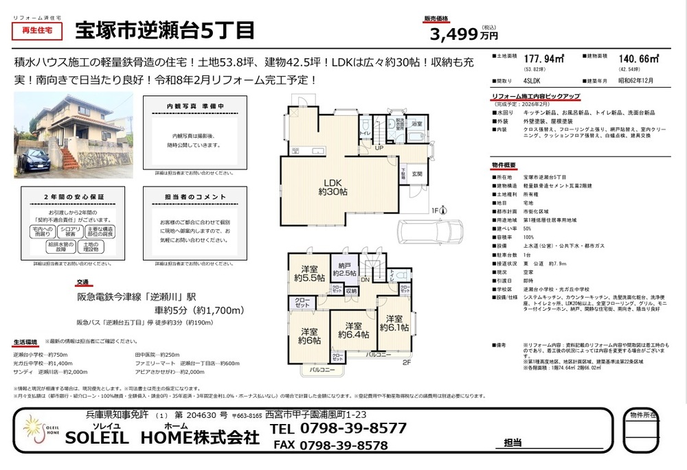 LDK20畳以上 / 土地50坪以上 / 内外装リフォーム / 内装リフォーム / 南向き / システムキッチン / 陽当り良好 / 全居室収納 / 閑静な住宅地 / シャワー付洗面化粧台 / トイレ2ヶ所 / 外装リフォーム / 2階建 / 2面以上バルコニー / 南面バルコニー / フローリング張替 / 温水洗浄便座 / 浴室に窓 / TVモニタ付インターホン / リノベーション / 通風良好 / 全居室フローリング / 都市ガス / シューズインクローク / 納戸