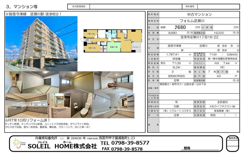 2680万円 フォルム逆瀬川