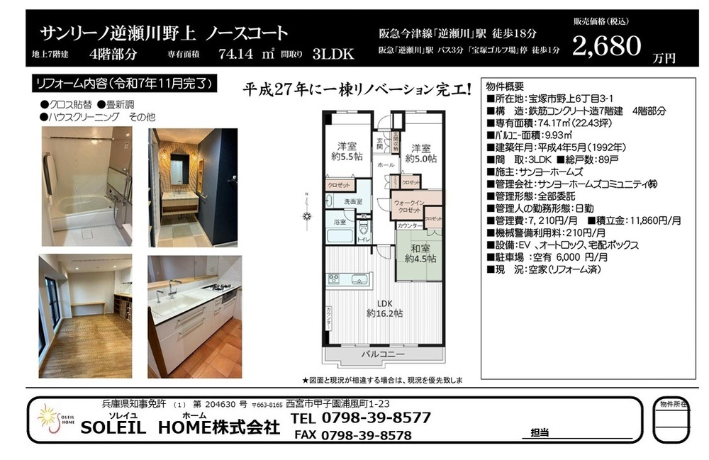 2680万円 サンリーノ逆瀬川野上ノースコート