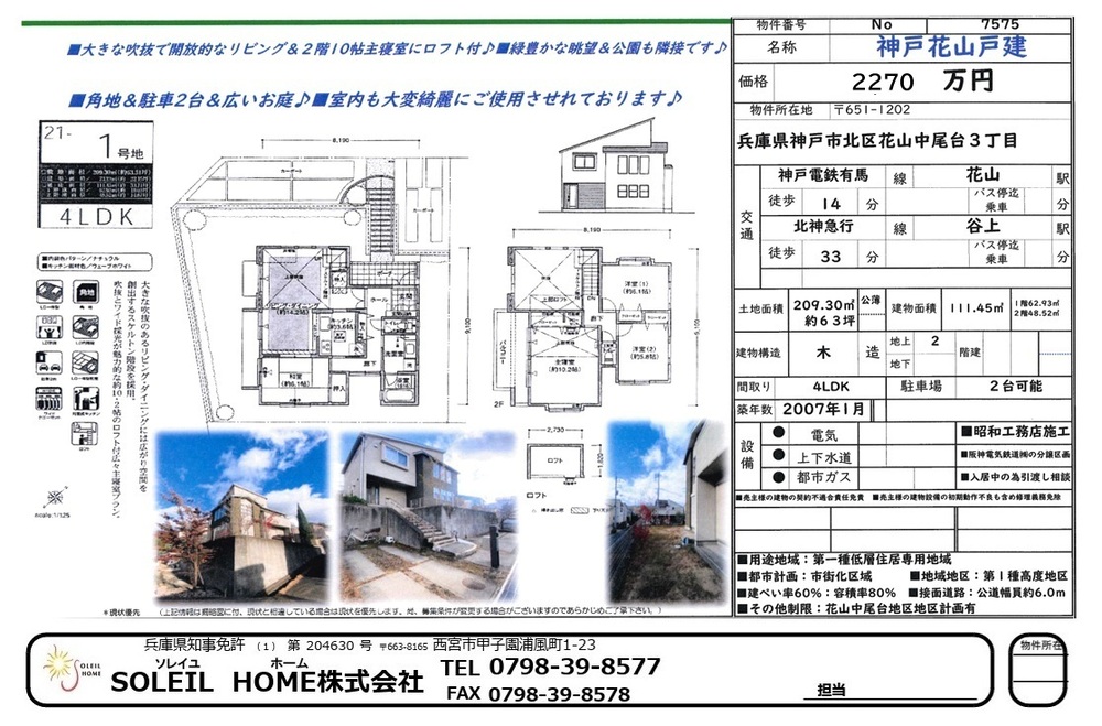 2270万円 北区花山中尾台3丁目