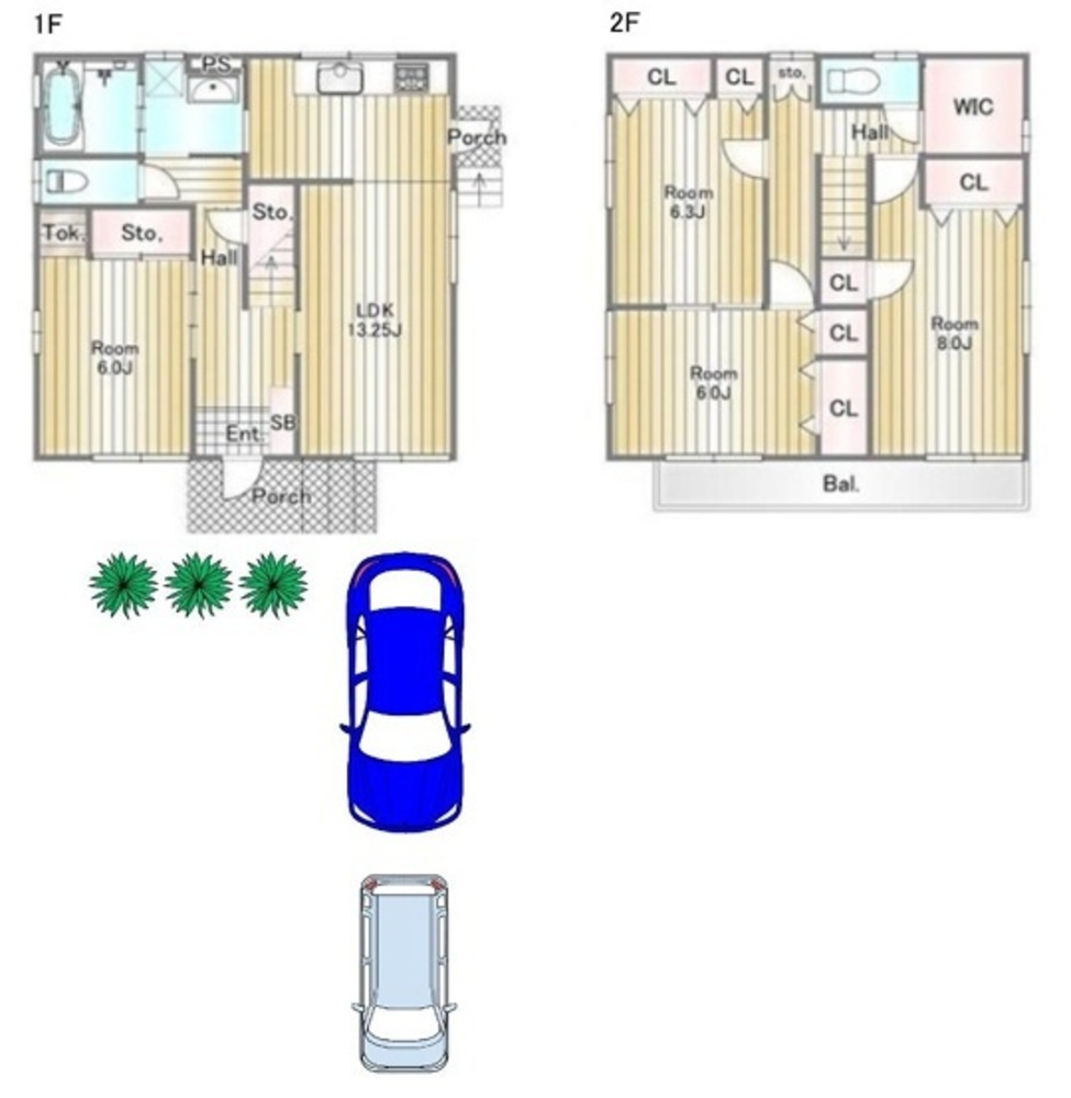 駐車2台可 / スーパー 徒歩10分以内 / システムキッチン / 陽当り良好 / 全居室収納 / 閑静な住宅地 / 前道6m以上 / トイレ2ヶ所 / 浴室1坪以上 / 2階建 / 南面バルコニー / 温水洗浄便座 / 床下収納 / 浴室に窓 / 通風良好 / 全居室フローリング / ウォークインクローゼット / 都市ガス / シューズインクローク / 食器洗乾燥機