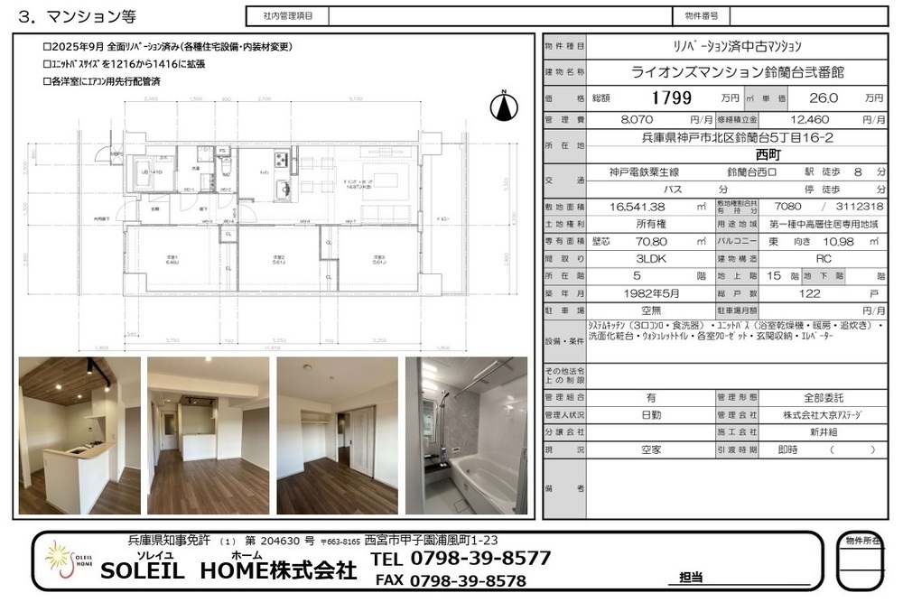 1799万円 ライオンズマンション鈴蘭台弐番館