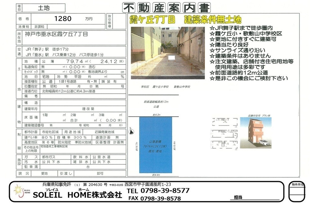 1280万円 垂水区霞ヶ丘7丁目