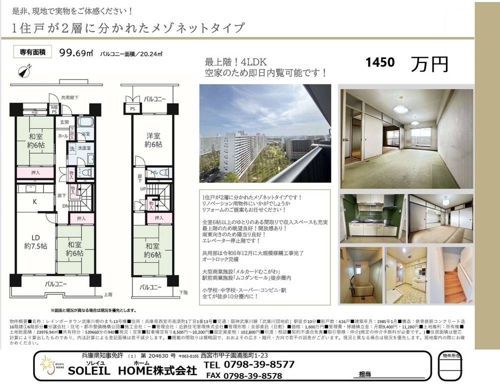 1450万円 レインボータウン武庫川樹のまち13号棟
