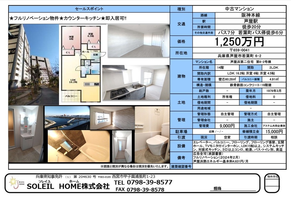 1250万円 芦屋浜第二住宅 第6-2号棟