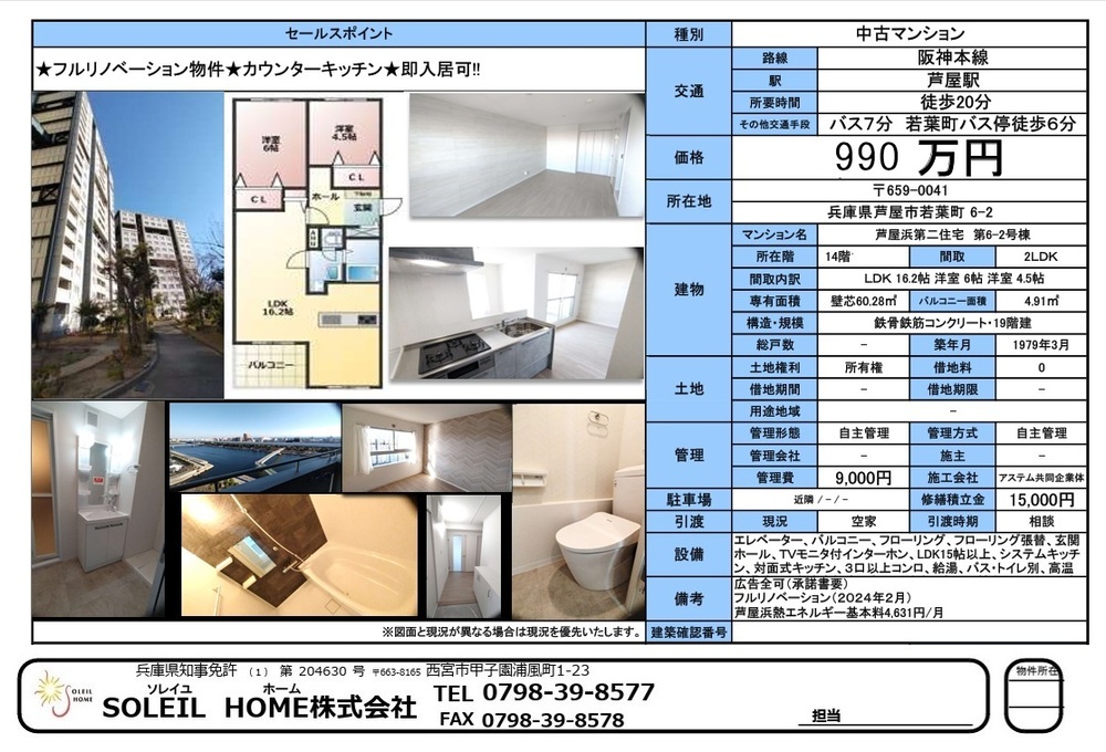 990万円 芦屋浜第二住宅 第6-2号棟
