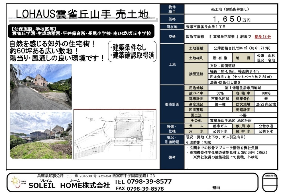 1650万円 宝塚市雲雀丘山手1丁目