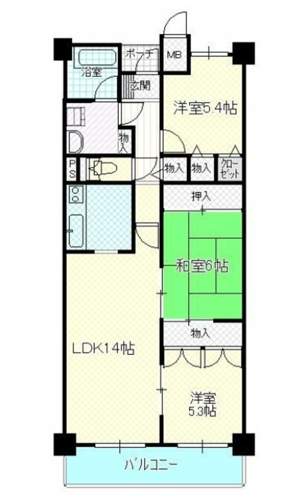 山が見える / 内装リフォーム / システムキッチン / 陽当り良好 / 全居室収納 / 閑静な住宅地 / 和室 / シャワー付洗面化粧台 / 東南向き / 南面バルコニー / フローリング張替 / 平面駐車場 / 温水洗浄便座 / TVモニタ付インターホン / 緑豊かな住宅地 / 通風良好 / エレベーター / 駐輪場 / バイク置場