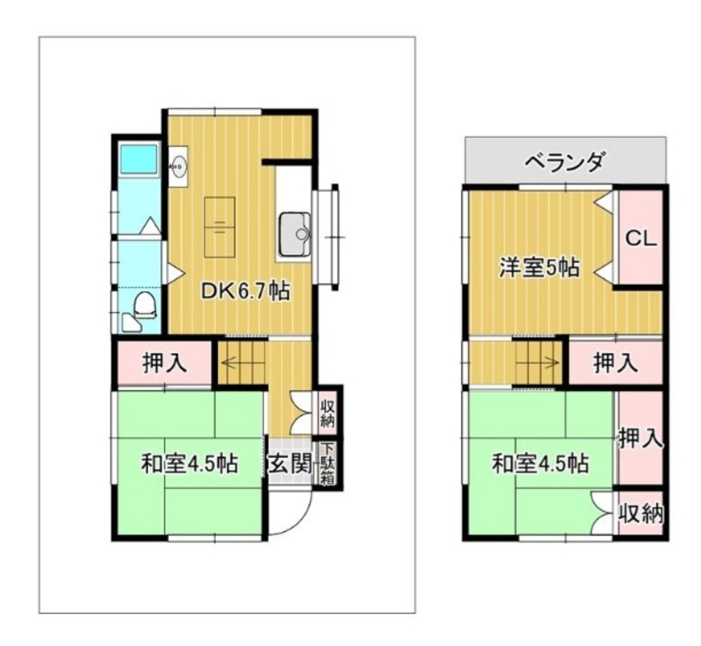 2沿線以上利用可 / スーパー 徒歩10分以内 / 市街地が近い / 陽当り良好 / 全居室収納 / 駅まで平坦 / 閑静な住宅地 / 和室 / 2階建 / 温水洗浄便座 / 床下収納 / 浴室に窓 / 通風良好 / 都市ガス / 小学校 徒歩10分以内 / 平坦地 / 周辺交通量少なめ