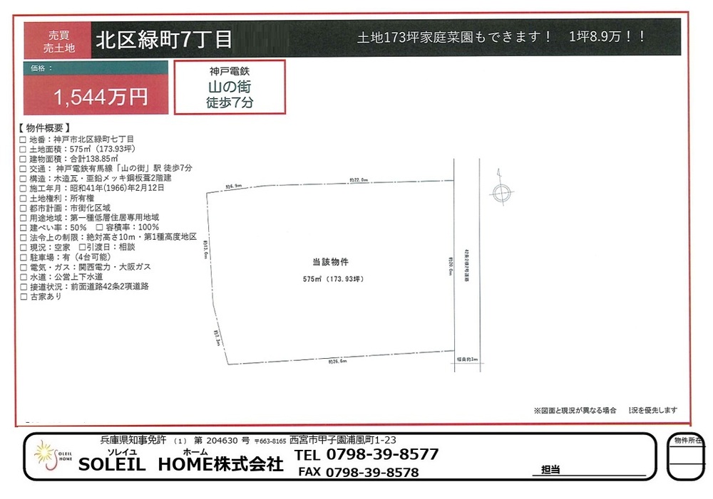 ■土地173坪家庭菜園も可能です