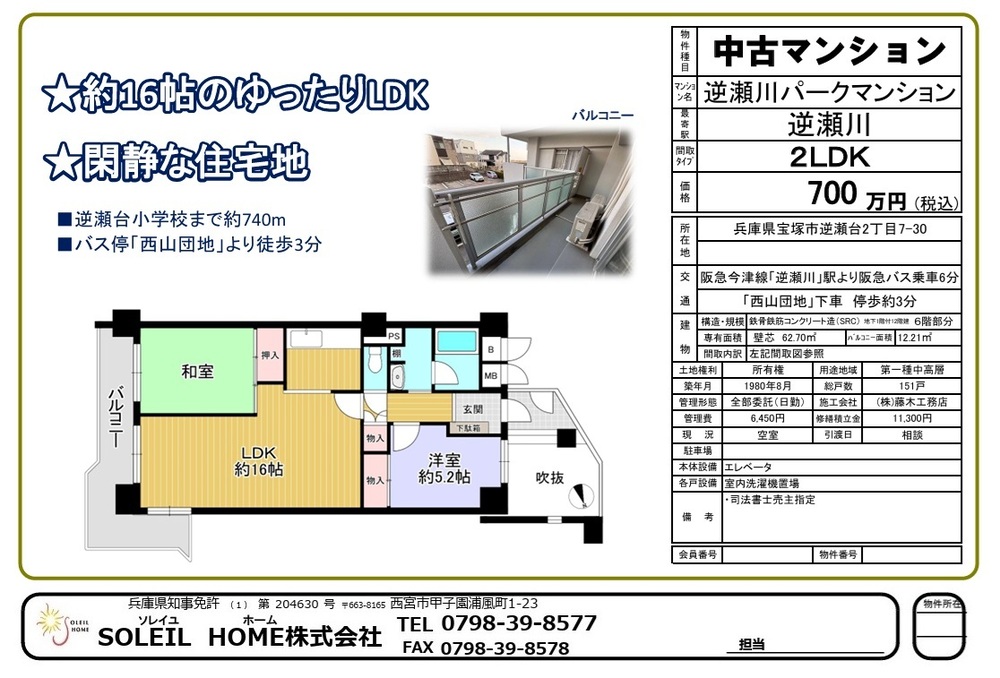 700万円 逆瀬川パークマンション